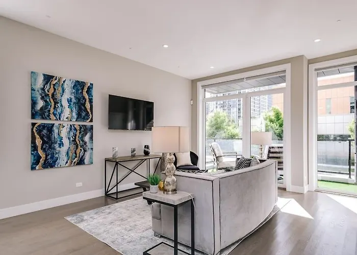Midway International airport can be reached within 20 minutes drive, and natural attractions like the modest Ward A. Montgomery Park are 700 metres away. Guests can visit the Chicago Theatre, which is approximately a 25-minute walk from New Construction Building In River North villa, or check out the super-tall skyscraper "Willis Tower", which is 2.1 km away. For sports enthusiasts, this holiday home is an ideal starting point to discover Chicago's athletic scene, with the Wrigley Field, situated 6 km away.